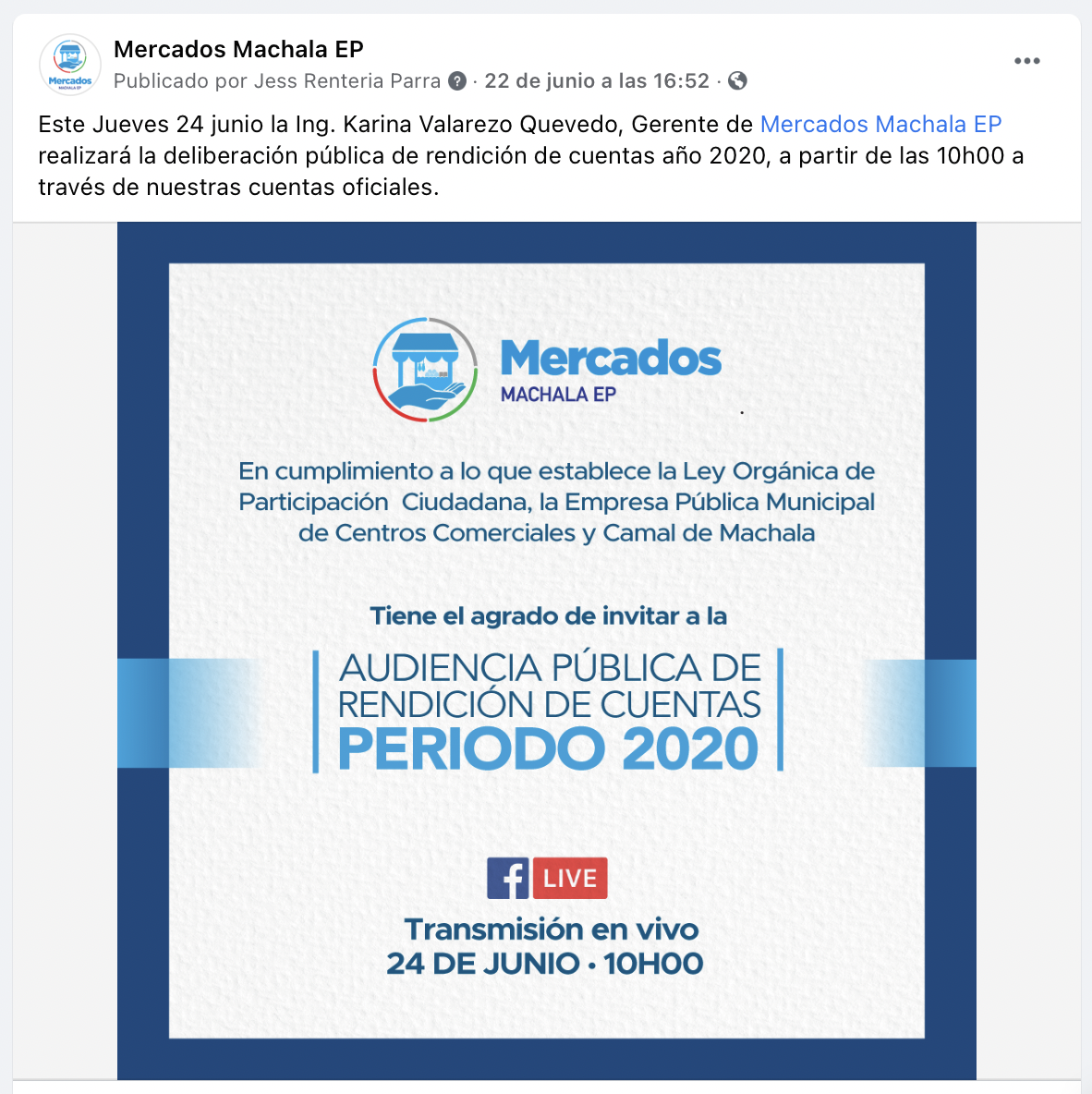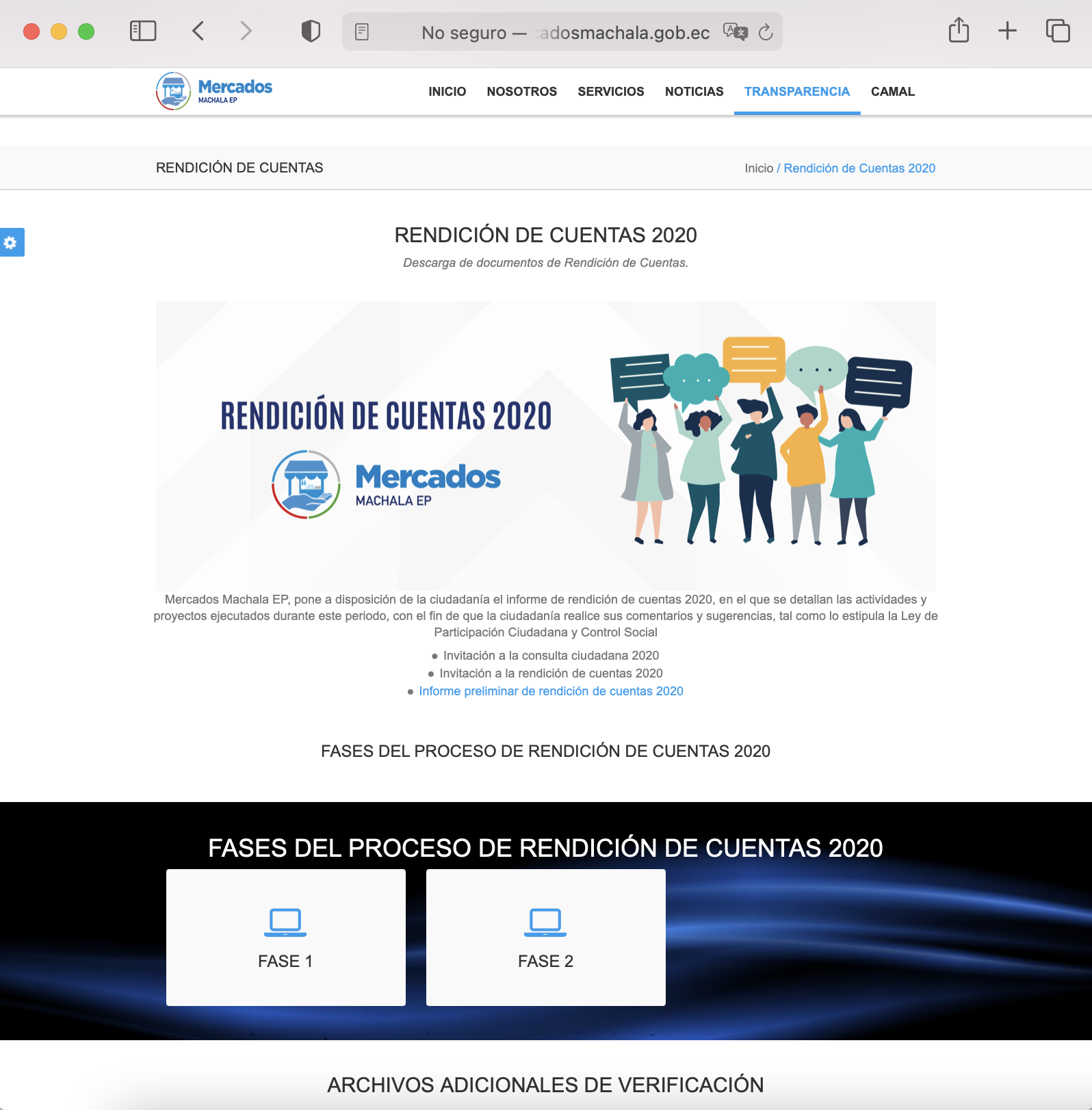 Mercados Machala EP, pone a disposición de la ciudadanía el informe de rendición de cuentas 2022, en el que se detallan las actividades y proyectos ejecutados durante este periodo, con el fin de que la ciudadanía realice sus comentarios y sugerencias, tal como lo estipula la Ley de Participación Ciudadana y Control Social